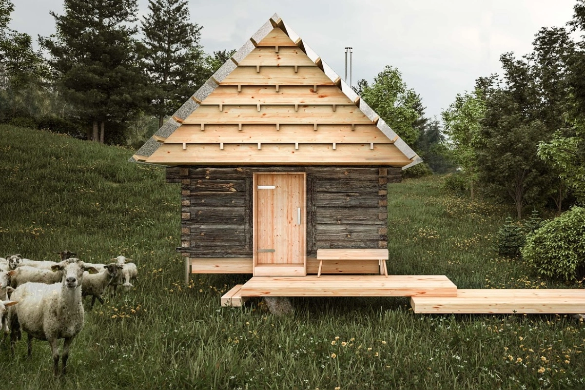 Pod vizuálnu štúdiu sa podpísal ateliér GUČA architektúry, ktorý navrhol spojenie pôvodných zrubových stien s modernou drevenou platformou a netradičnou sklolaminátovou strechou s kupolou na pozorovanie hviezd. Projekt tak kombinuje tradičný vzhľad s výrazným vizuálnym prvkom a modernou funkciou.