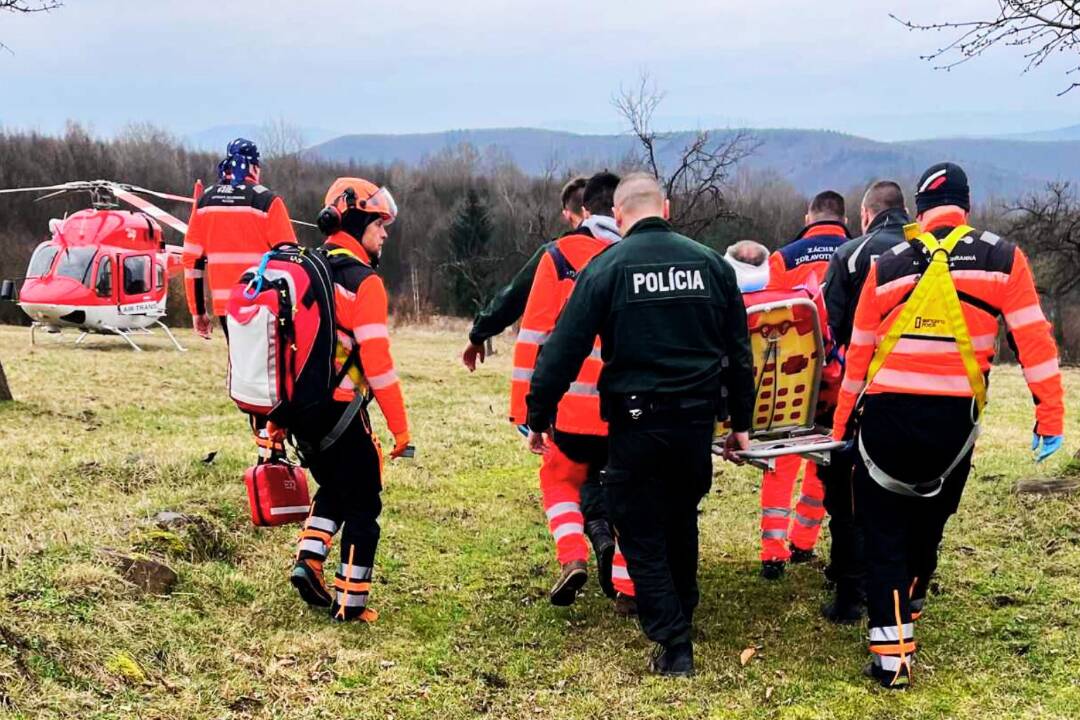 FOTO: Policajti v Detve pomáhali pri transporte muža, ktorého ťažko poranila motorová píla