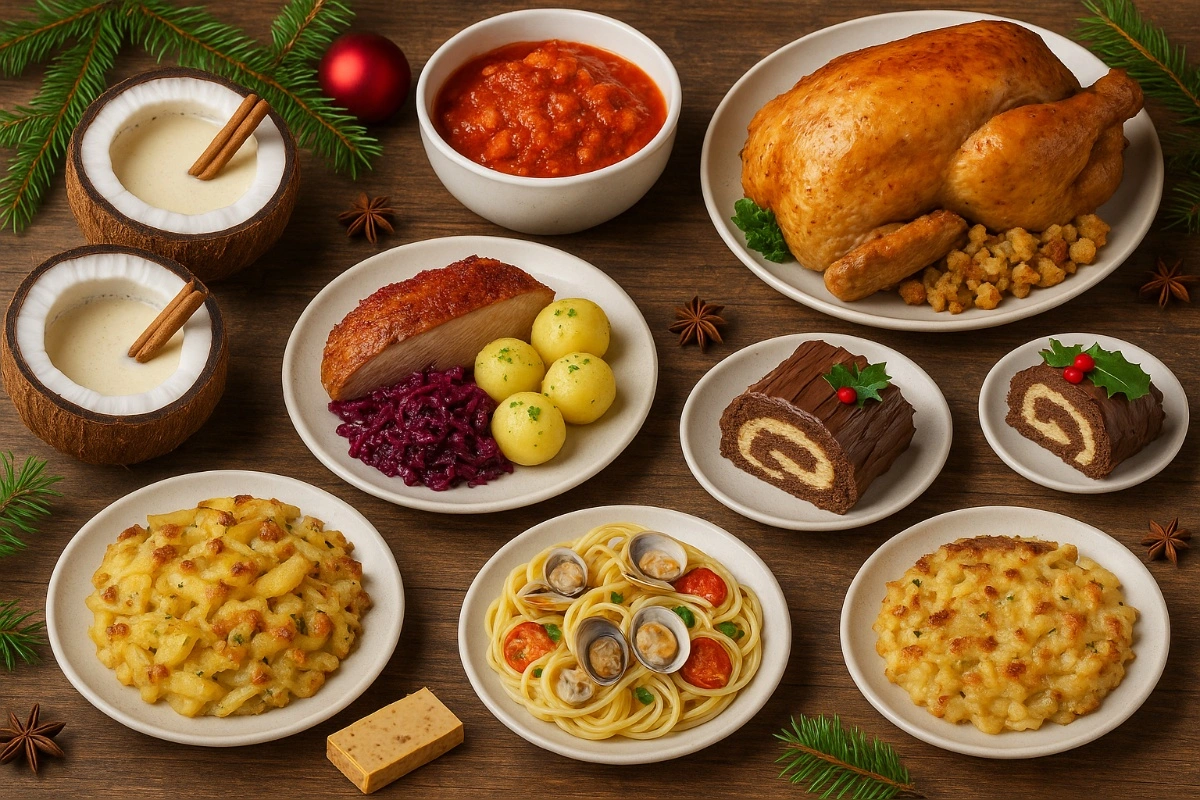 Vo Veľkej Británii dominuje moriak s prílohami ako „prasiatka v deke“ (párky obalené v slanine, pozn. red.), ružičkový kel či yorkshirský puding. Americké Vianoce sú pestré a ovplyvnené kultúrnou rôznorodosťou – často pripomínajú Deň vďakyvzdania s plneným moriakom, kašou, omáčkou a tradičnými koláčmi. Na Kube je Noche Buena postavená na trojici surovín: čiernej fazule, ryži a pečenom bravčovom, doplnených o banány a rumový koláč.