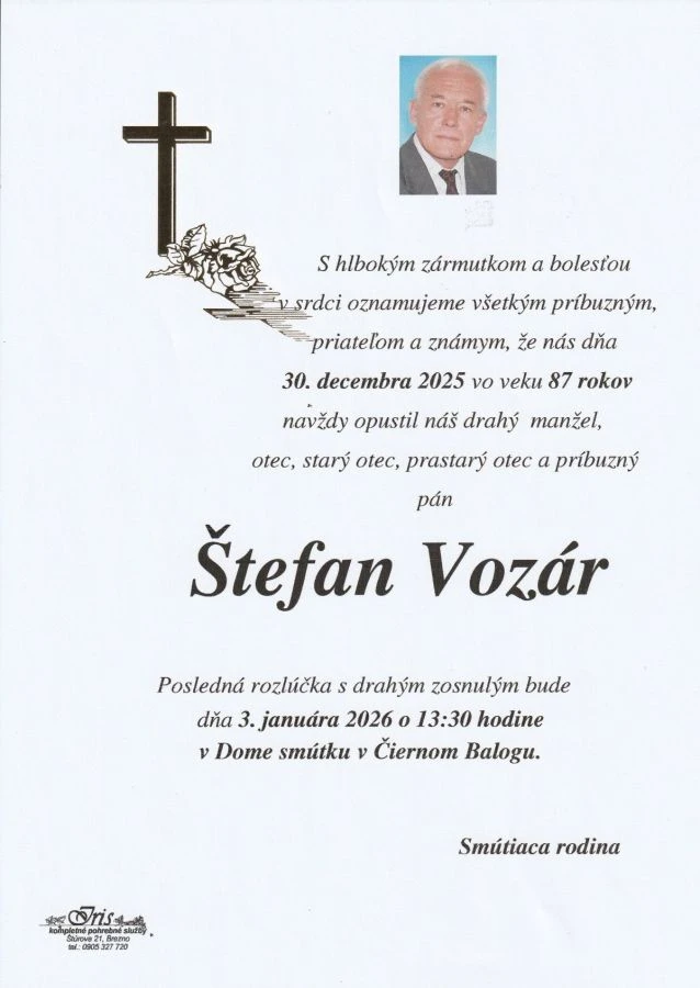 Vo veku 87 rokov zomrel obyvateľ obce Čierny Balog Štefan Vozár, ktorý sa venoval fotografovaniu, miloval šport a miestni ho mali radi. Ako uviedla obec, cez fotoaparát dokázal zachytiť okamihy, ktoré budú žiť ďalej.
