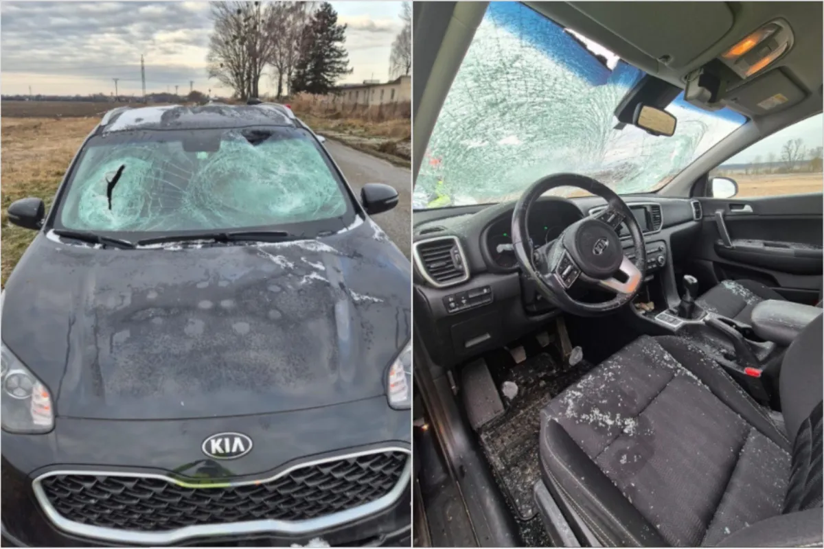 Krátko po 9:00 hod. oznámil vodič osobného auta Kia, že mu pri meste Šaštín-Stráže spadol z neznámeho kamiónu kus ľadu priamo na čelné sklo. Náraz bol podľa polície natoľko silný, že sklo prerazil a ľad skončil v interiéri vozidla.