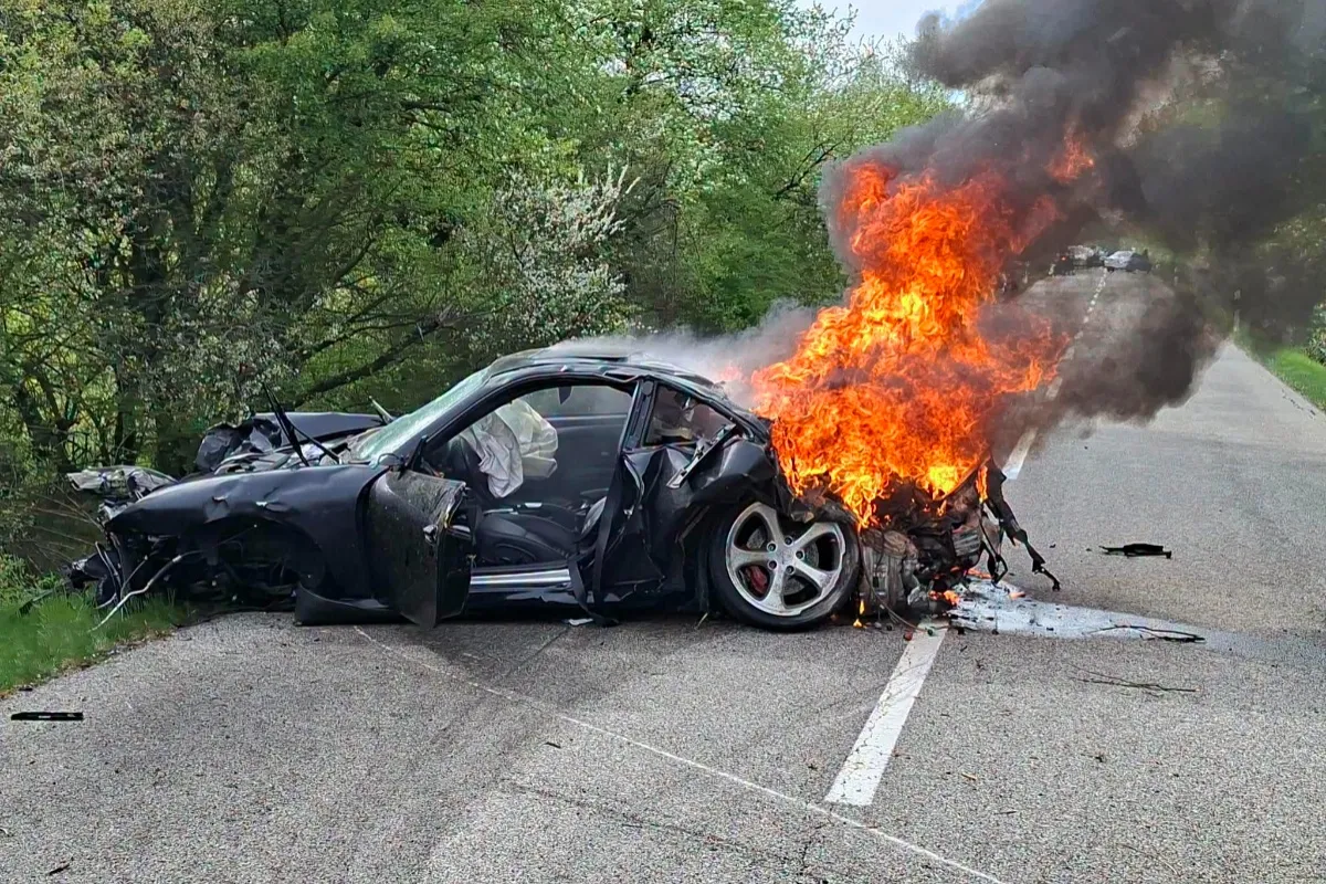 Pri okrese Krupina havaroval luxusný športiak a začal horieť, zasahoval aj záchranársky vrtuľník