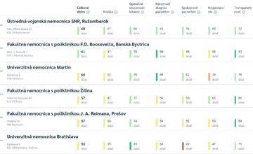 Rooseveltka skončila druhá v rebríčku nemocníc, najlepšie hodnotená bola za náročnosť diagnóz. Ako dopadla tá vaša?